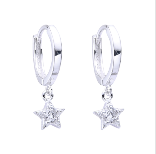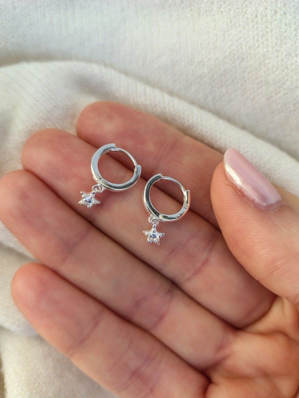 Aros colgantes, con cierre tipo Huggies de Plata 925 con cubic. Delicados, modernos, livianos y fáciles de cerrar.