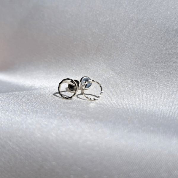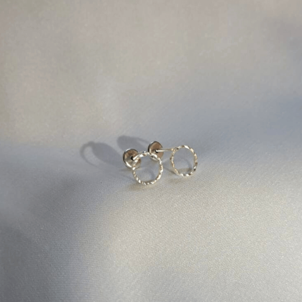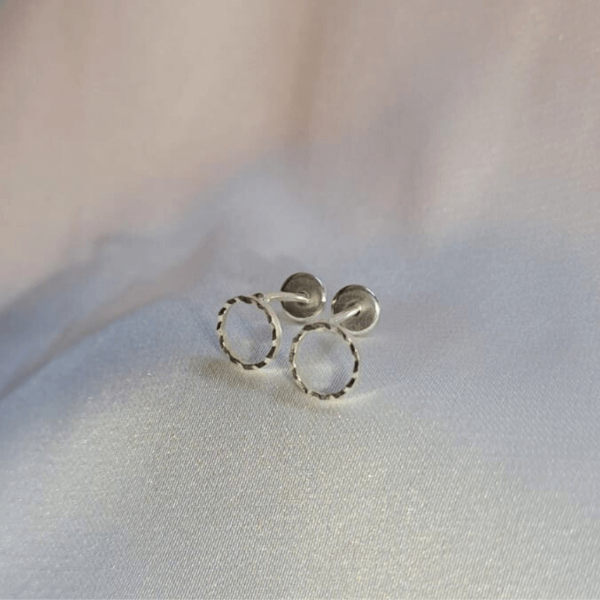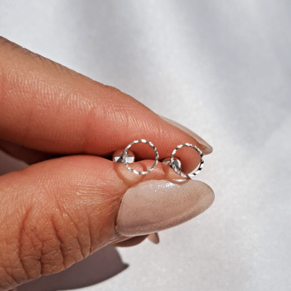Abridores de Plata 925 con diseño de pequeño círculo calado y delicado detalle facetado en su contorno, que aporta un brillo sutil y especial.