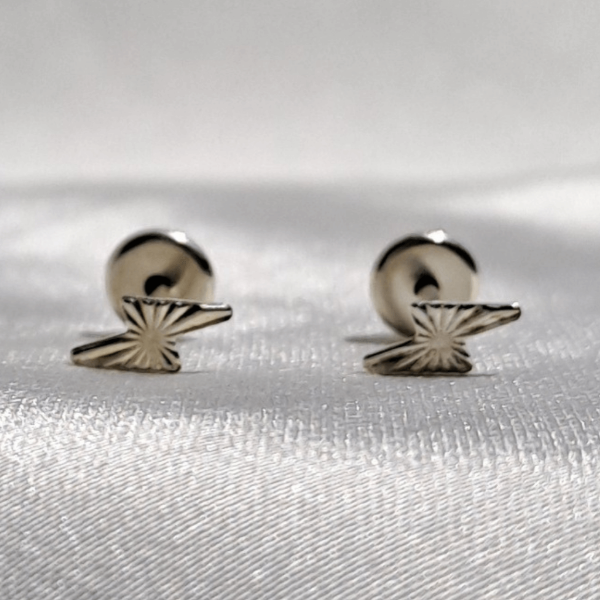 Abridores de Plata 925 con Diseño de Rayo facetado, que refleja la luz de forma sutil y delicada. Pequeños y livianos, ideales para el uso diario. Diseñados para usarse solos o acompañados de otros aros pequeños, creando un look delicado y personal.