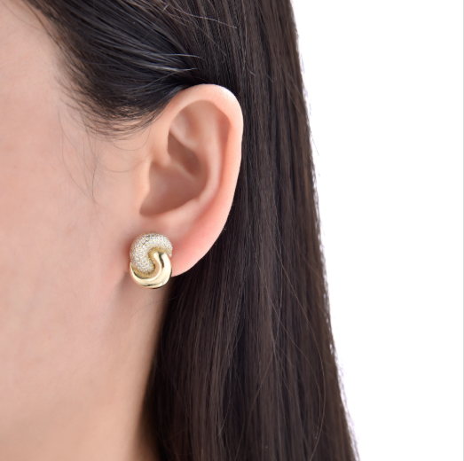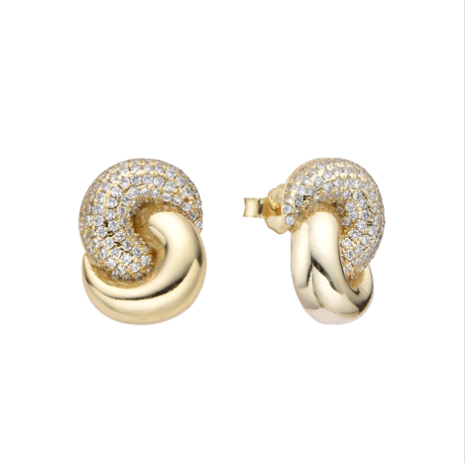 Aros de Plata 925 bañados en oro flash. Con cierre mariposa y cubics.