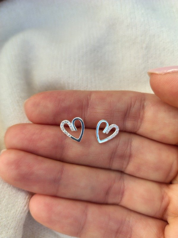 Aros corazón de Plata 925 con cubics, con cierre mariposa. Delicados y livianos.